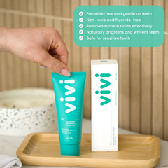 Meet vivi. Thoughtfully made toothpaste that helps strengthen enamel and support a healthier oral routine. Clean ingredients, gentle whitening, and a fresh mint finish without the burn.